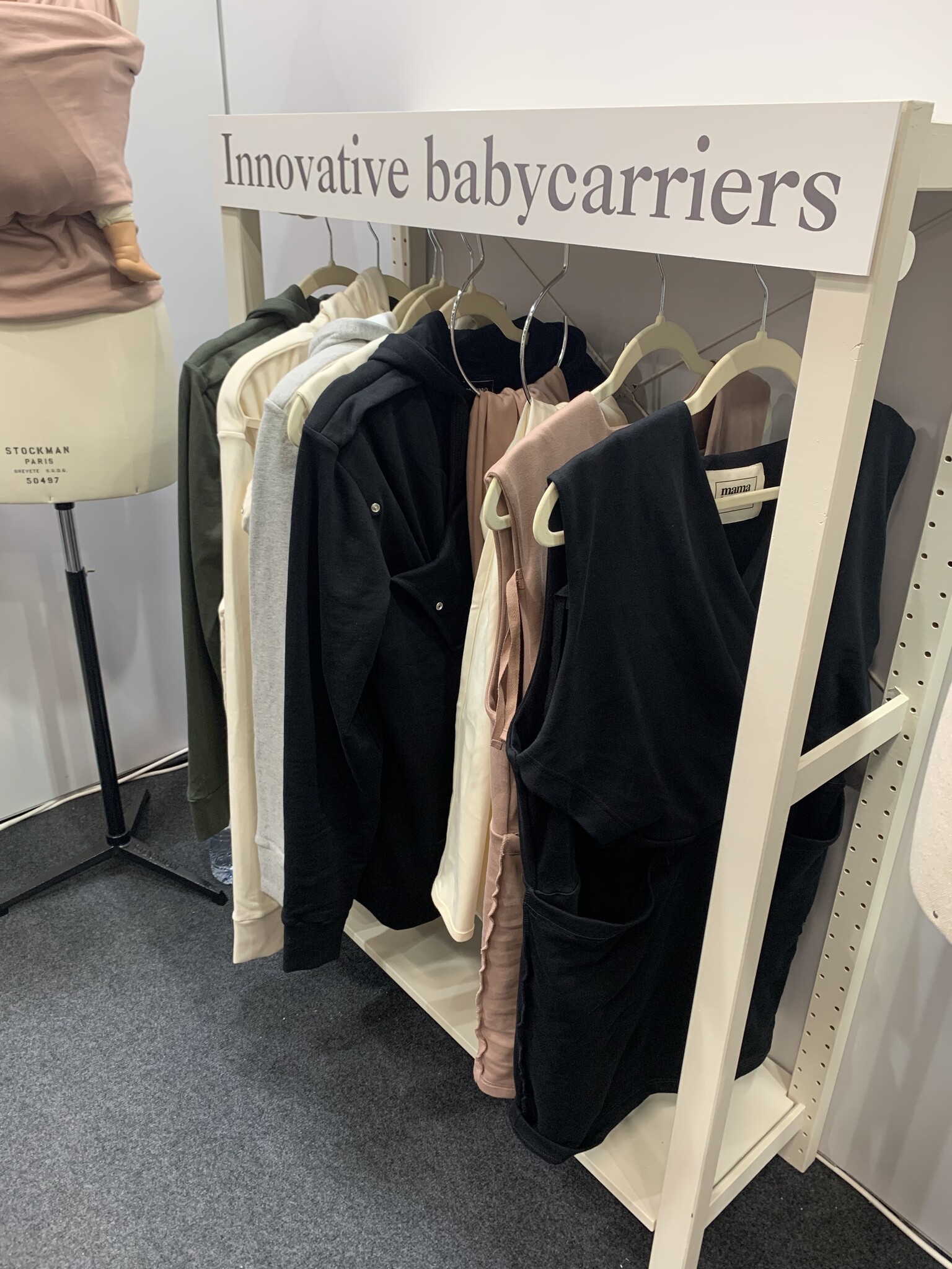 Eenmaal op de beursvloer liepen we vrijwel direct tegen Mama Hangs aan. Zij hadden Artipoppe look-a-like gepresenteerd, de stoffen en productie vindt plaats in Frankrijk. De stoffen hebben allemaal een GOTS certificering voor de stoffen. Het was direct duidelijk dat ze overal aan gedacht hebben. Alleen... waarom toch weer die pasvorm, waar er teveel ruimte is bij de schouders en het nekje van de baby? En waarom alleen gekruist op de rug, zo is het goed passend maken van de draagzak een grote uitdaging, vrijwel onmogelijk. Zelf geven ze aan, dat de draagzak vanaf 3 maanden geschikt is. Gelukkig namen ze onze feedback ter goede aan. Hopelijk doen ze hier iets mee.