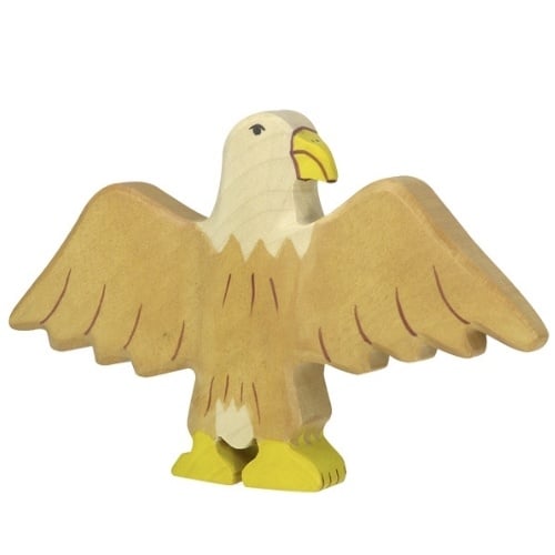 Zoals alle Holztiger figuren is ook deze adelaar handgemaakt in Europa uit massief hout. De figuur is glad afgewerkt, stevig uitgevoerd en met zorg beschilderd met kindvriendelijke waterverf. Dankzij de robuuste dikte ligt het figuur prettig in kleine kinderhandjes en is het perfect voor dagelijks spel.