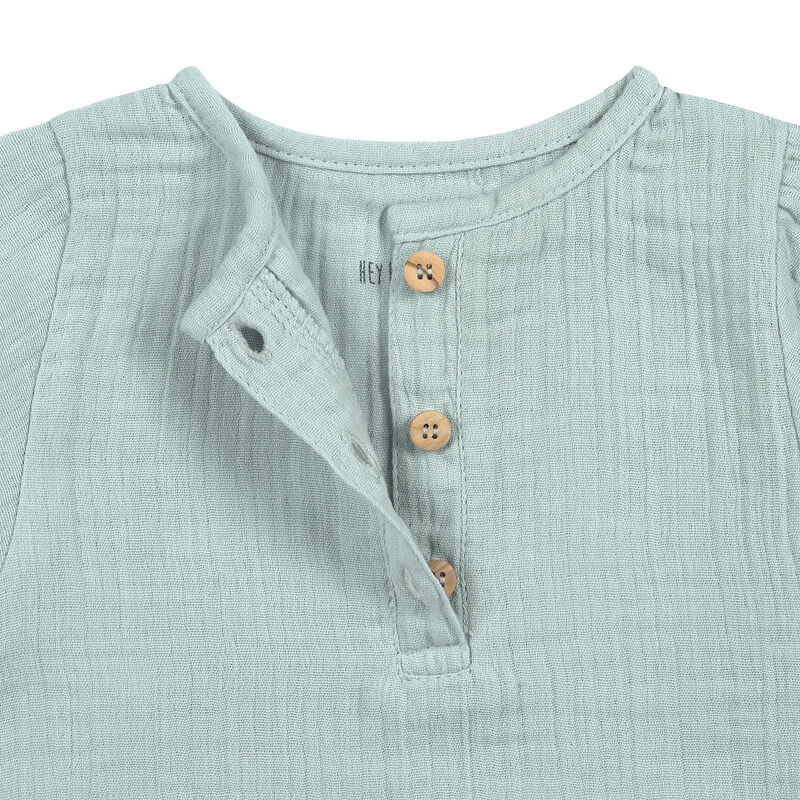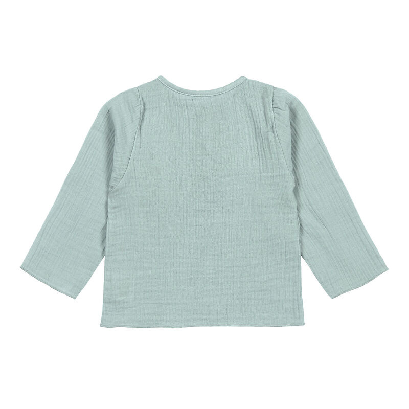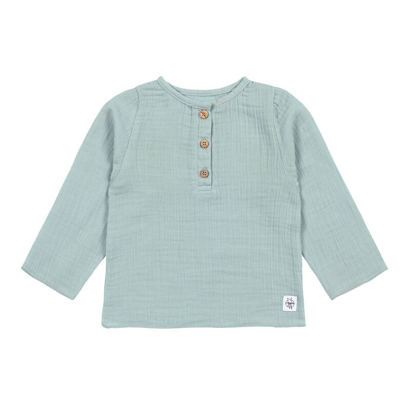 De longsleeve heeft een losse, comfortabele pasvorm, zodat je kindje alle ruimte heeft om te spelen, kruipen en ontdekken. Dankzij de knopen aan de voorkant trek je het shirt gemakkelijk aan en uit – wel zo handig bij de allerkleinsten.