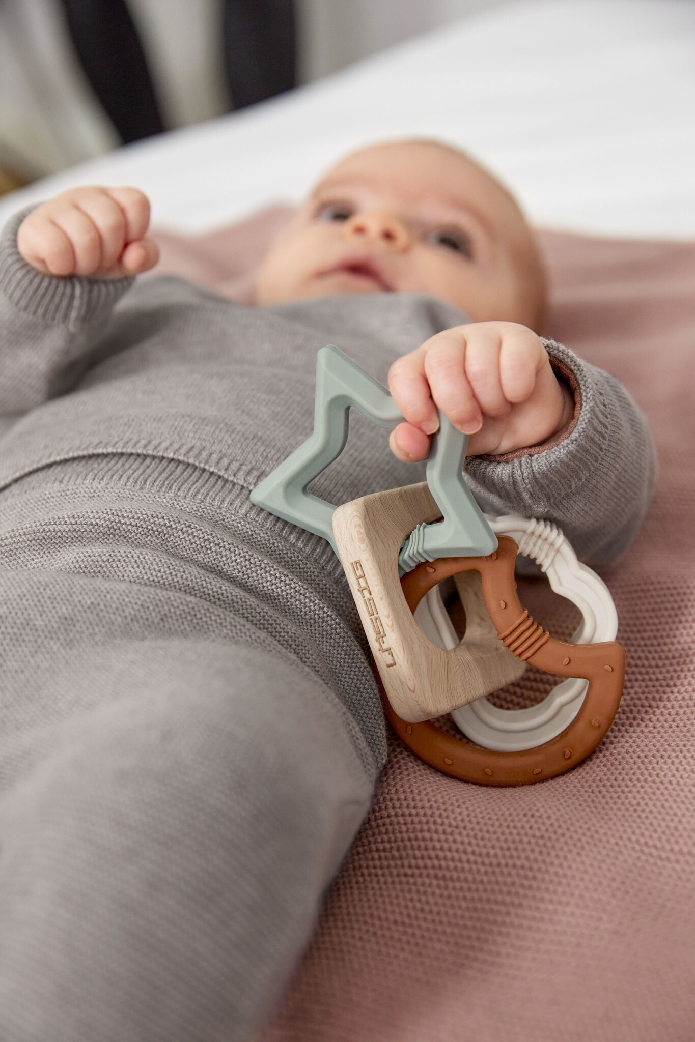 Voor kleine ontdekkers met grote nieuwsgierigheid! Het BPA-vrije LÄSSIG bijtspeeltje van hout en silicone uit de Little Universe-collectie is ideaal voor baby’s die graag de wereld om zich heen verkennen. De verschillende structuren en oppervlakken stimuleren alle zintuigen – vooral de tastzin.