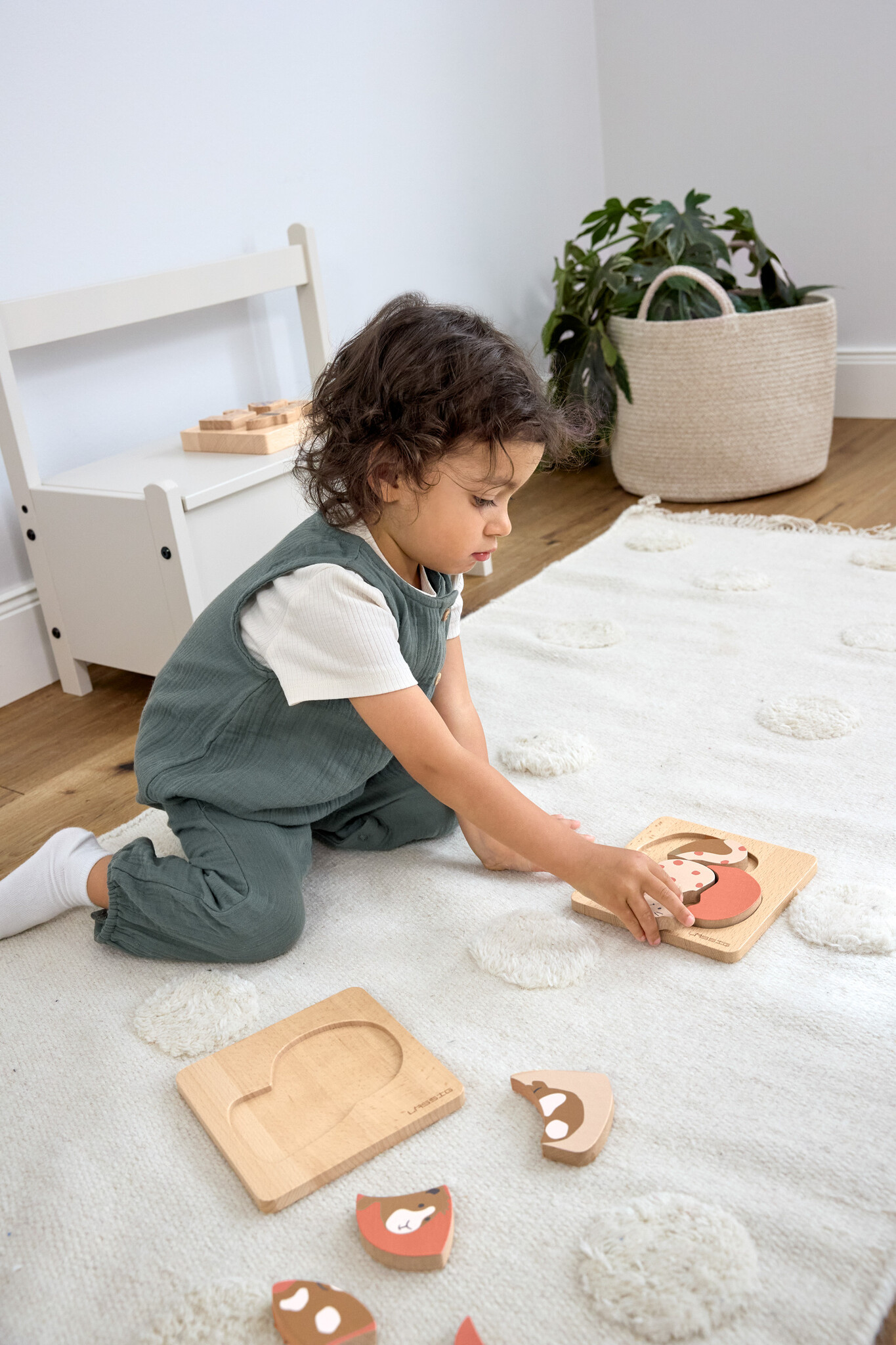 De LÄSSIG houten puzzelset is gemaakt van 100% FSC™-gecertificeerd beukenhout. Het FSC-keurmerk garandeert verantwoord bosbeheer, zodat zowel mensen, dieren als bossen beschermd worden. Een duurzaam cadeau dat zorgt voor eindeloos speelplezier en dat perfect past bij de vrolijke Little Mateys-collectie.
