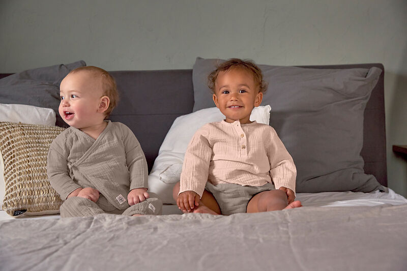 Muslin staat bekend om zijn lichte, ademende structuur. De stof bestaat uit meerdere dunne lagen katoen, waardoor het shirt luchtig draagt en tegelijkertijd stevig genoeg is voor dagelijks gebruik. En het mooie: na iedere wasbeurt wordt de stof nóg zachter.