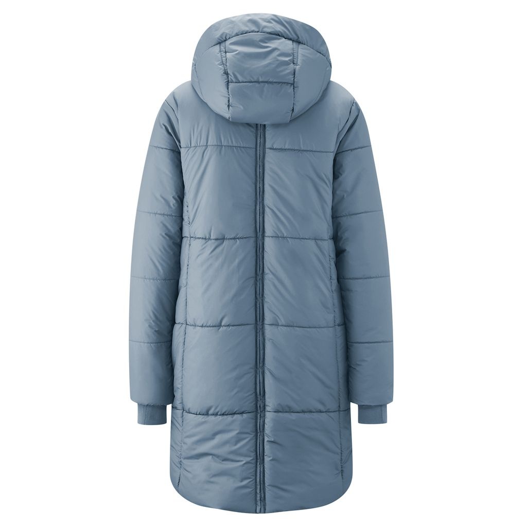 Deze jas veganistisch en duurzaam geproduceerd van recycled polyest en FC-vrije impregnering tegen sneeuw en regen, daarom bijzonder geschikt tegen de vrieskou.