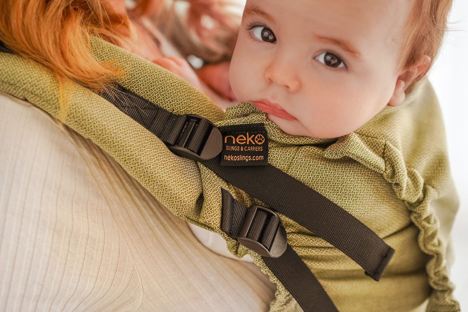De Neko Medium is een heerlijke draagzak, die eenvoudig verstelbaar is in de hoogte en breedte. Je verstelt de breedte van het zitje met drukknoopjes. De hoogte verstel je met Perfect Fit Adjusters, dat zijn gespjes waarmee je het rugpand inneemt of juist langer maakt.