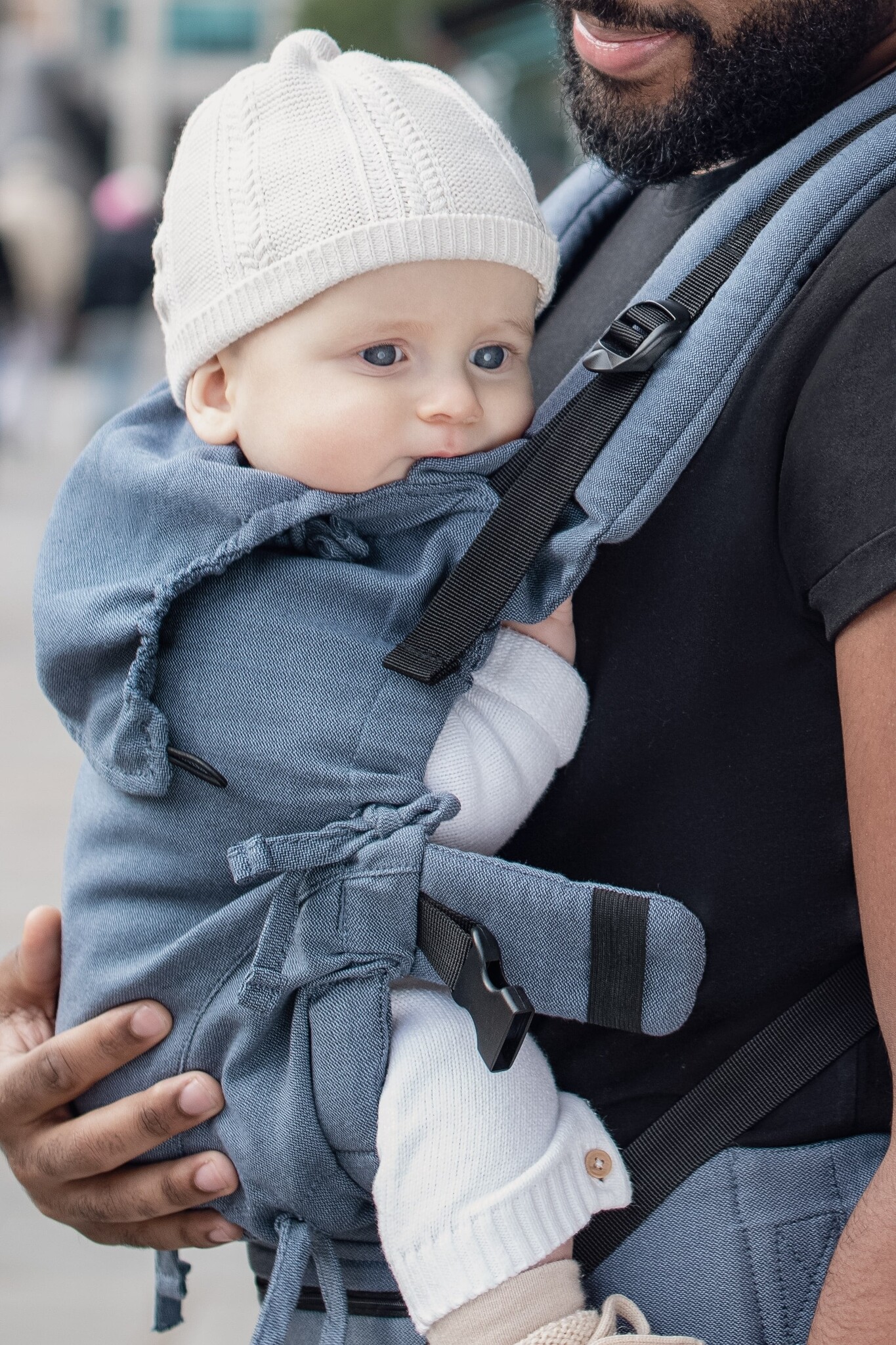 Deze draagzak is mooi verstelbaar voor de allerkleinsten, je maakt de schouderbanden eenvoudig vast op de tailleband. Is je kindje groter en klik je vast aan het rugpand, dan zijn de gespen netjes weggewerkt onder het opbergzakje.
