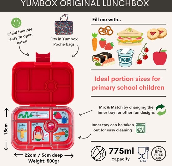Telefoonnummer 085-799 18 02 / Whatsapp 0655760002. (werkdagen, 9.00-13.30) [email protected]Yumbox Bentobox Original - 6 vakken - Wow Red